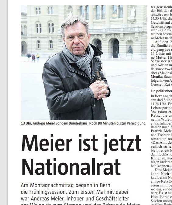 1. März 2023Ist in der Zeitung DIE BOTSCHAFT zu lesen und: „Viele der Dossiers hat er gelesen und auch die Voten seiner Vorgängerin ist er nochmals alle durchgegangen. Er wird sie entsprechend vertreten. Mit der BVG-Revision steht ein komplexes Dossier an. «Eine Unité de doctrine ist mir wichtig, die halte ich hoch.» Davon abgesehen wer de er sich in Bern für das Gewerbe und die KMU, für Familienbetriebe und für die Berufsbildung stark machen.“
