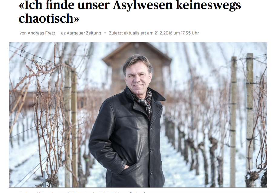 Auch in Nepal wachsen Aargauer Reben11. Mai 2022Stellungnahme Syngenta-Übernahme11. Mai 2022 «Ich finde unser Asylwesen keineswegs chaotisch» Kategorien Medienspiegel Stichworte Interview mit Andreas Meier mit der AARGAUER ZEITUNG. Hier zu lesen… Teilen